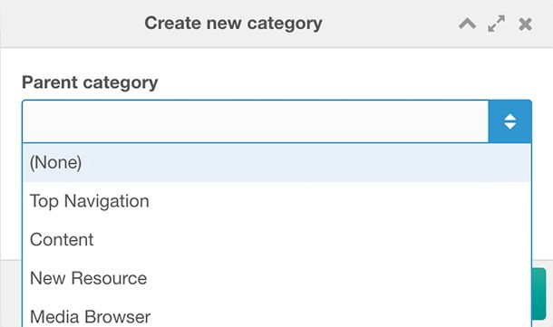 Creating a new category is done via a popup box. This box was already in place for the menu functionality. Implementing the same for categories was pretty easy. You can see the steps taking in the difference between stage2...stage3. However, we are not yet finished. The combobox for parents still lists manager menu entries from the original code.
